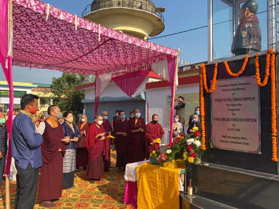 Also, during this year, Dondrub Ling Tibetan settlement of Clement Town, unveiled the statue of Kyabje Dzongnang Jampal Lodrö Rinpoche. Because of travel restrictions from COVID-19, the Yangsi Kyabje Dzongnang Rinpoche was unable to attend and officiate this ceremony as originally planned. Therefore, the ceremony was presided over by Kyabje Khenchen Rinpoche, Kyabje Choegon Rinpoche, and Kasur Gyari Drolma la, with members of the Tibetan colony in attendance. This ceremony was held with all the necessary precautions to prevent and spread of the coronavirus. Even with such restrictions in place all members of the Dondrub Ling community took great joy in celebrating the day.
