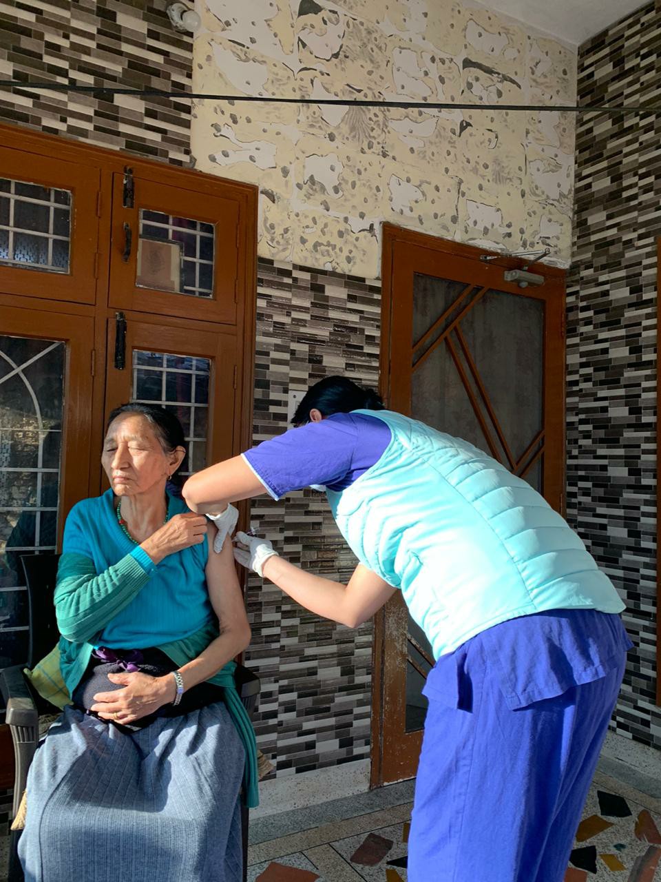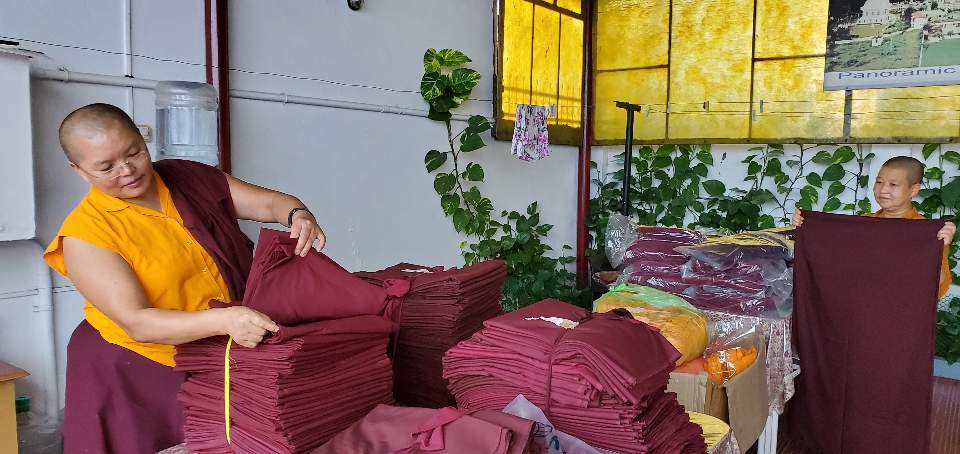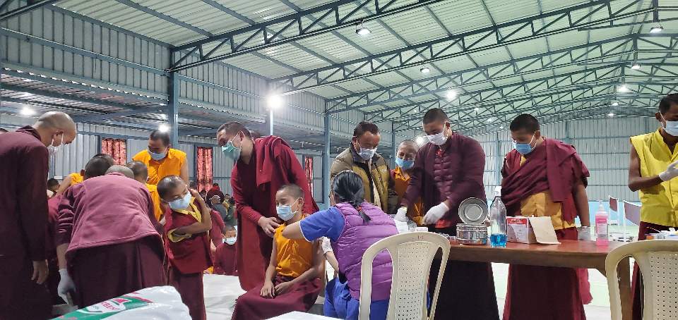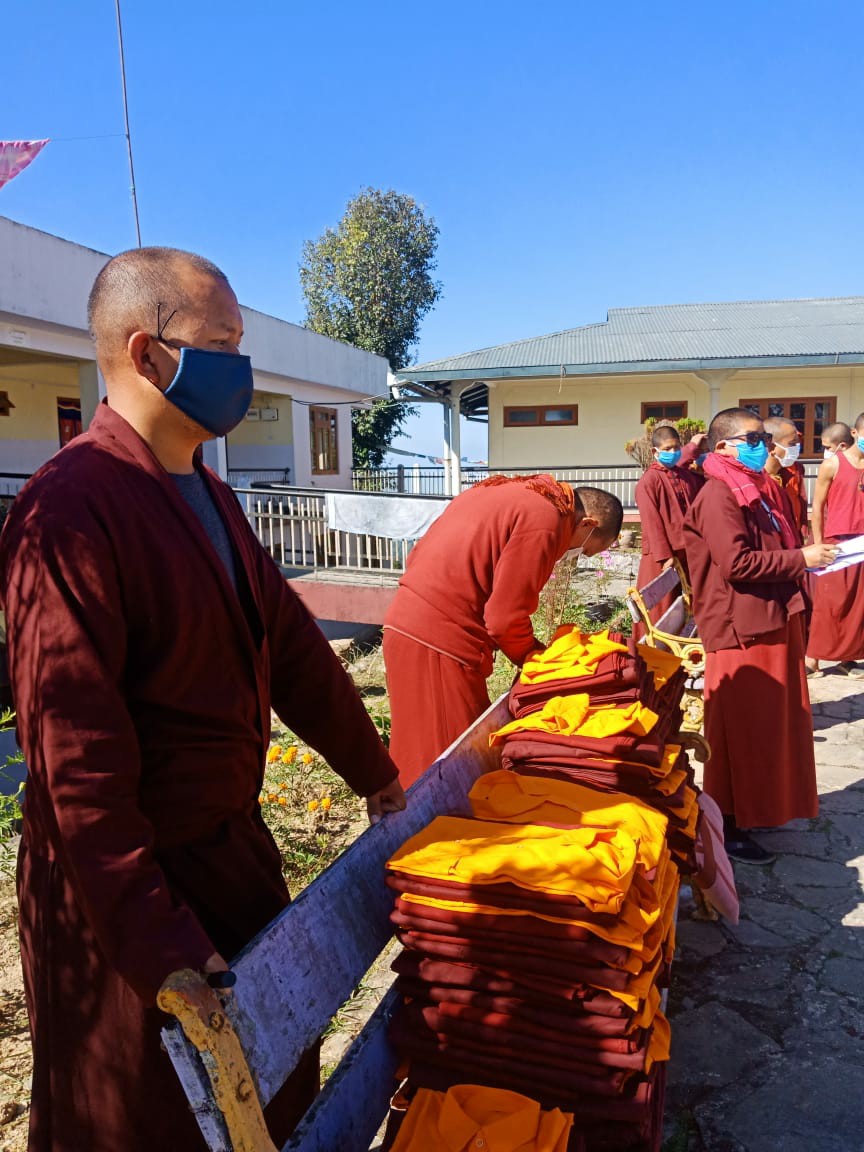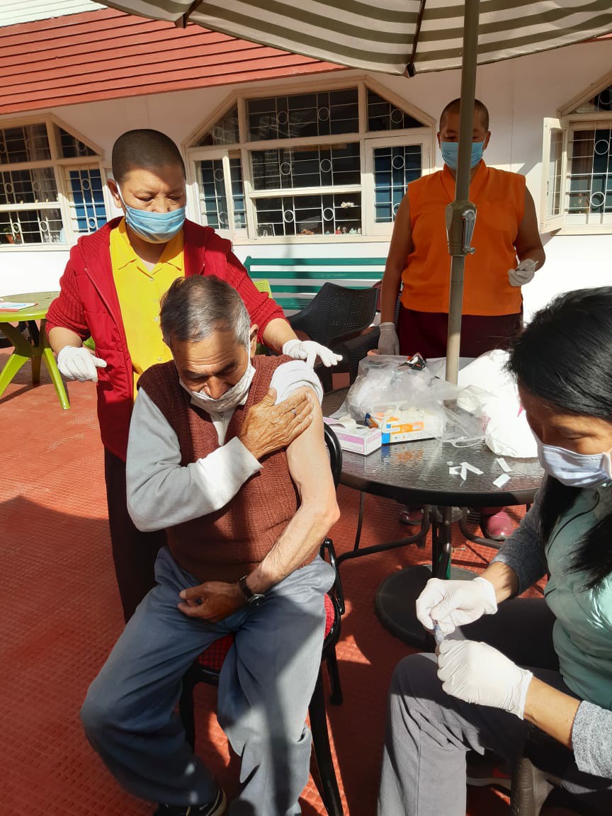 Under the guidance of Jetsün Khandro Rinpoche, the Monastery has also been engaged in extensive charitable work through the Mindrolling International Charitable Projects. Wherever possible, the Mindrolling sangha has given aid and support to the incredible number of people affected by the pandemic and the lock-downs. These projects have included vaccinating all monks, nuns, elderly and lay people in the monastery and the Dondrub Ling Tibetan Colony of Clement Town. The charitable projects have also provided food, supplies, and medical aid to those in need in the Tibetan Colony and all around the Indian state of Uttarakhand. An exerted effort was made to create a safe environment for local people to find work while maintaining great caution and safety measures against the pandemic.