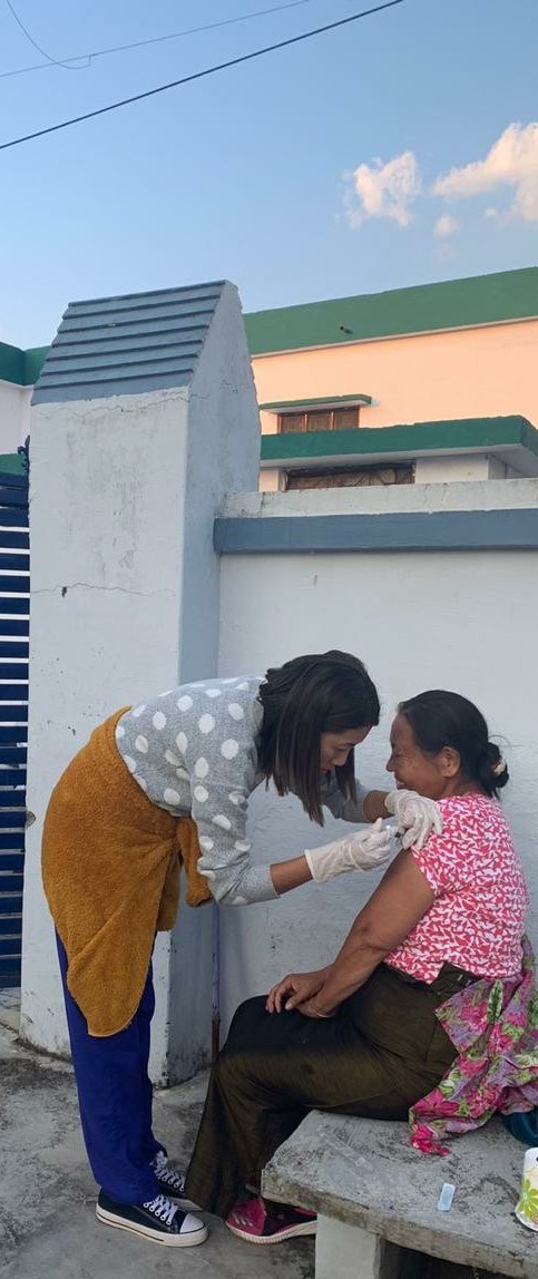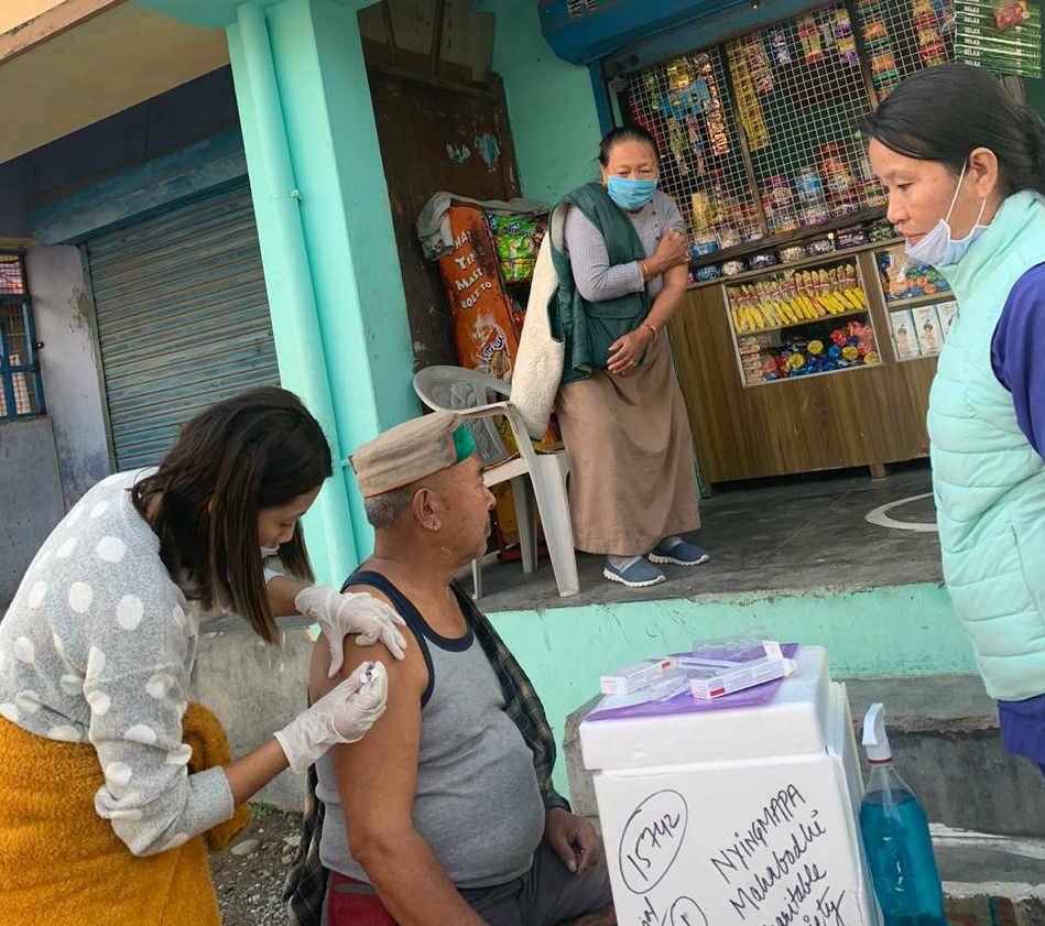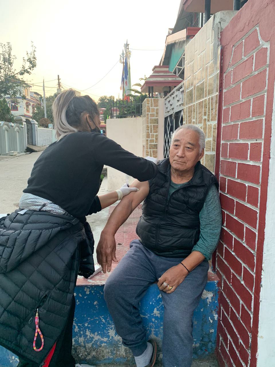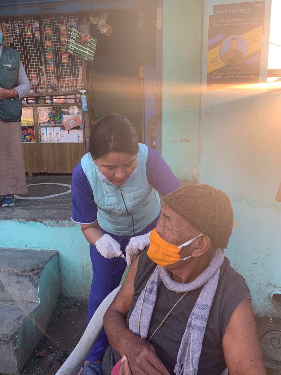 Under the guidance of Jetsün Khandro Rinpoche, the Monastery has also been engaged in extensive charitable work through the Mindrolling International Charitable Projects. Wherever possible, the Mindrolling sangha has given aid and support to the incredible number of people affected by the pandemic and the lock-downs. These projects have included vaccinating all monks, nuns, elderly and lay people in the monastery and the Dondrub Ling Tibetan Colony of Clement Town. The charitable projects have also provided food, supplies, and medical aid to those in need in the Tibetan Colony and all around the Indian state of Uttarakhand. An exerted effort was made to create a safe environment for local people to find work while maintaining great caution and safety measures against the pandemic.