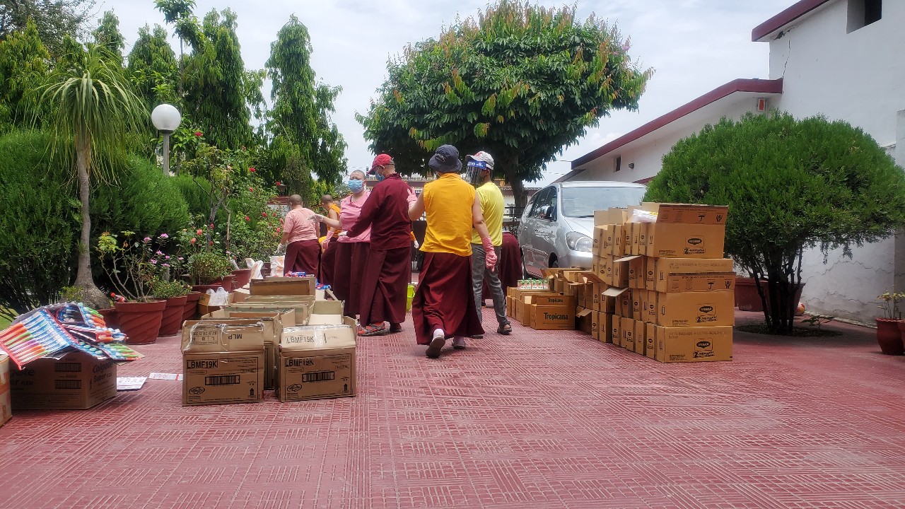 Amid such a worldwide upheaval and following all safety precautions, Mindrolling Monastery has been steadfast with the vision and activities of Dharma that have always supported and sustained the community and benefitted beings wherever possible. Remaining within the uncompromising view of Dharma, Minling Jetsün Khandro Rinpoche and all the teachers, the Monastery administration staff, and the monks and nuns of Mindrolling have done whatever possible to give aid and respite to those who have been affected by the pandemic.