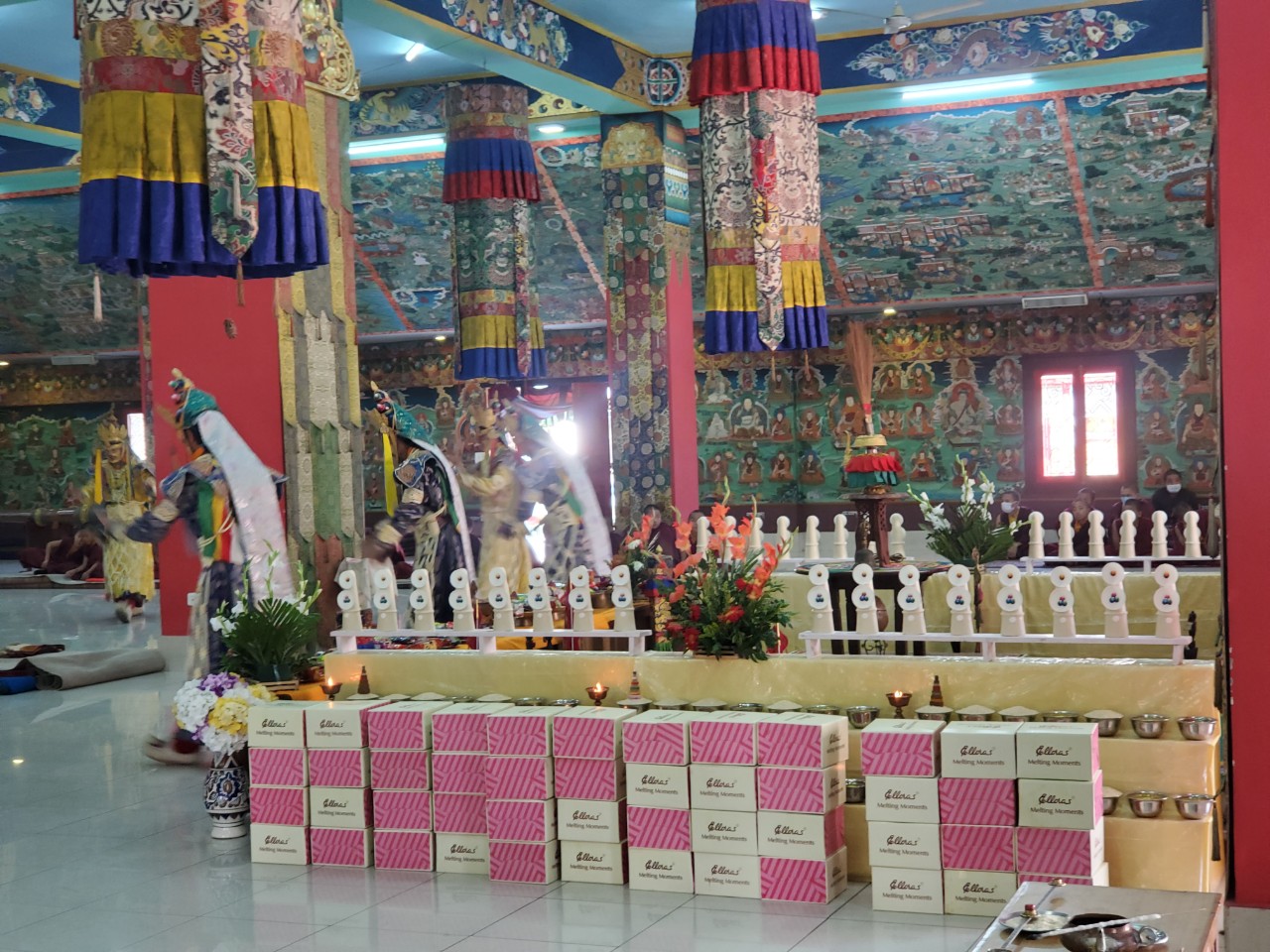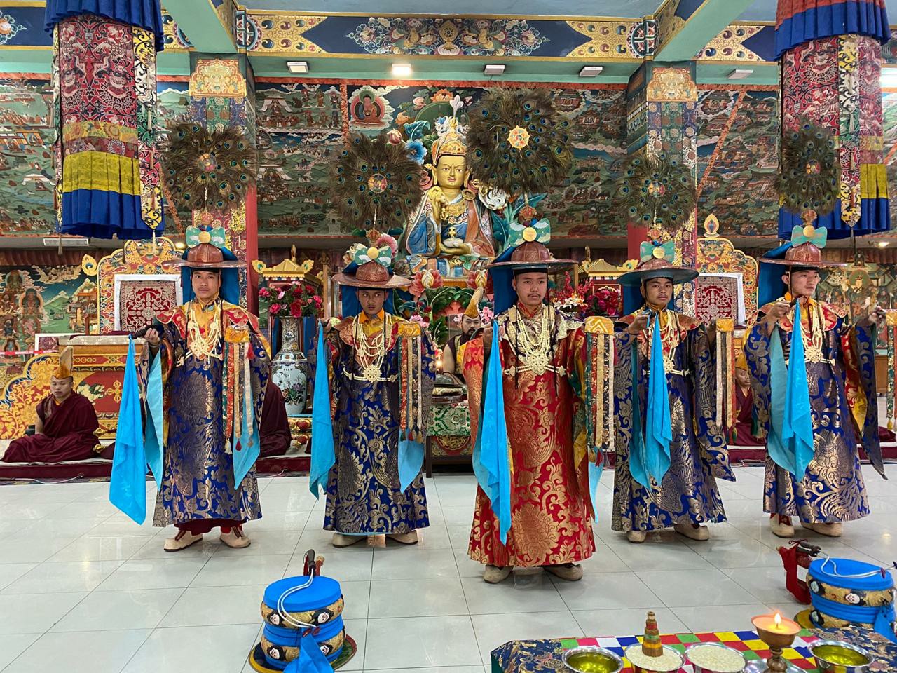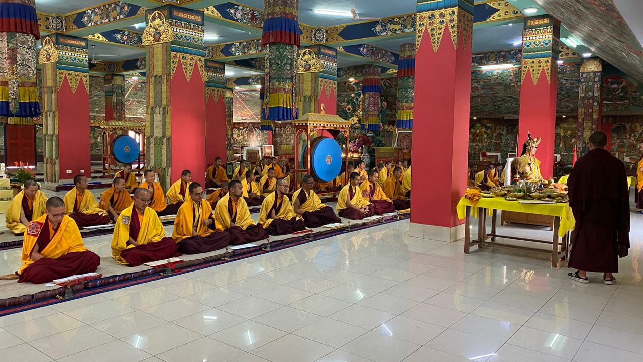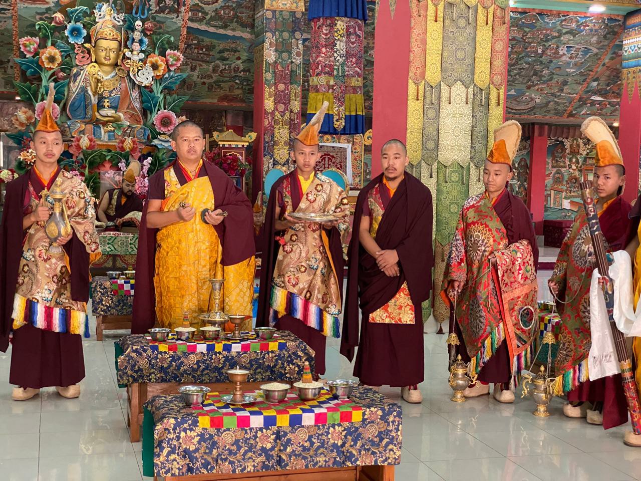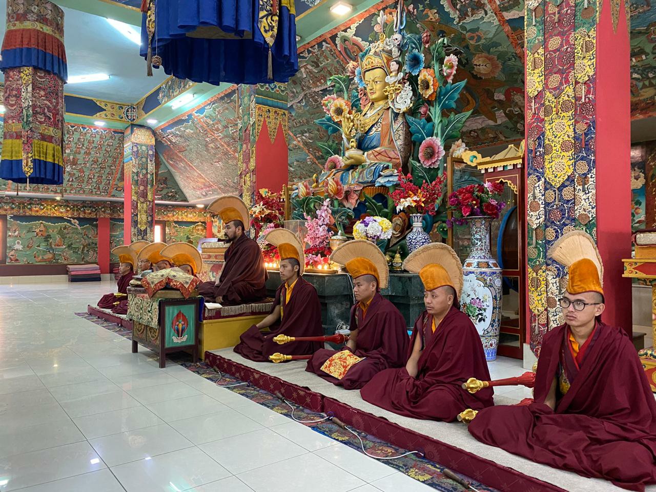 Following all health and safety guidelines from the government of India, Mindrolling Monastery has been doing continuous prayers to dispel the obstacles of all beings. In addition, all the annual Drubchöes and practices have been held following strict safety guidelines. The Minling Dorsem drubchö was held for seven days and was especially dedicated to all beings who have suffered and died due to the coronavirus pandemic. In addition, the Te-da Tshe Chu ceremony was held for three days. The Ka Ma’i Tshog Chen Dupa drubchö was held for seven days and the five-day drubchö for the three protectors Gyaltsen Lha Gsum was also held. These prayers have all been dedicated to easing the suffering of beings, a swift end to the pandemic, and pacification the elements.
