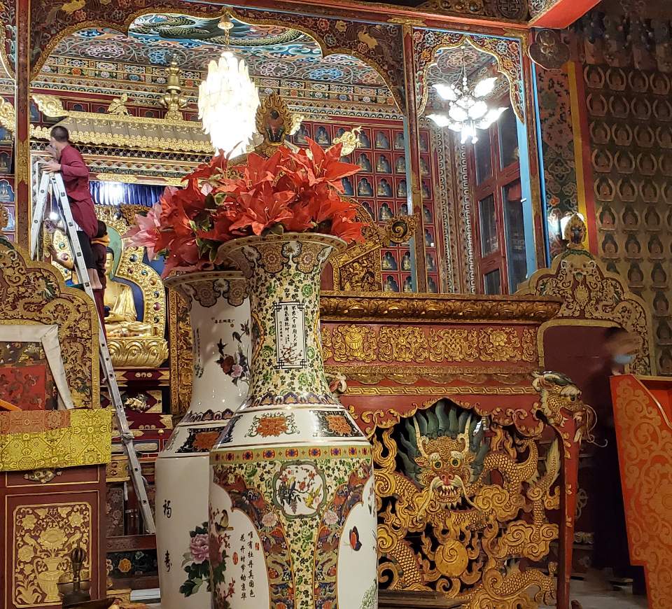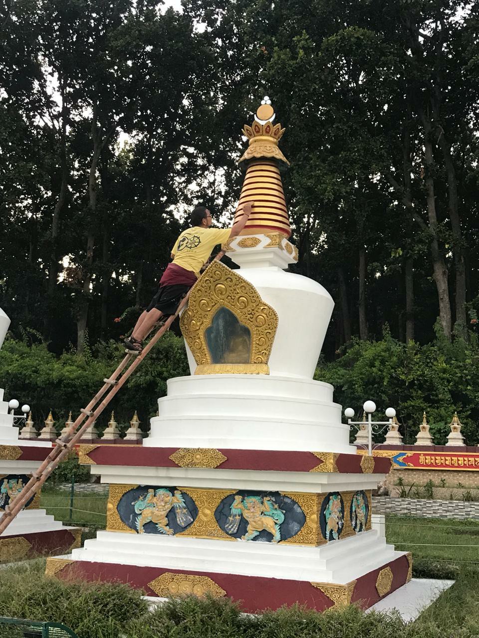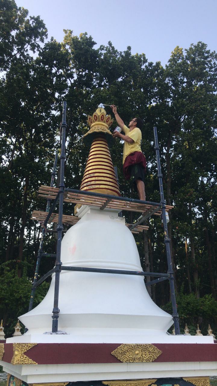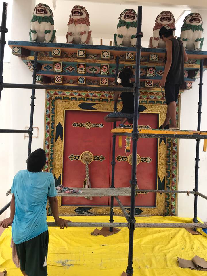 During the months of complete lock-down, the monastery has engaged in many renovation and restoration projects around the entire campus this year. These works include repairing all the murals and outer façade of the main temple and the stupa and repairing the road, septic, and water infrastructure. This work has been done in a detailed and thorough manner and will provide a well maintained, beautiful, and functional campus for the community and visitors for years to come. Members within the monastery undertook the entire work while following all the guidelines of safety.