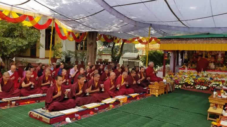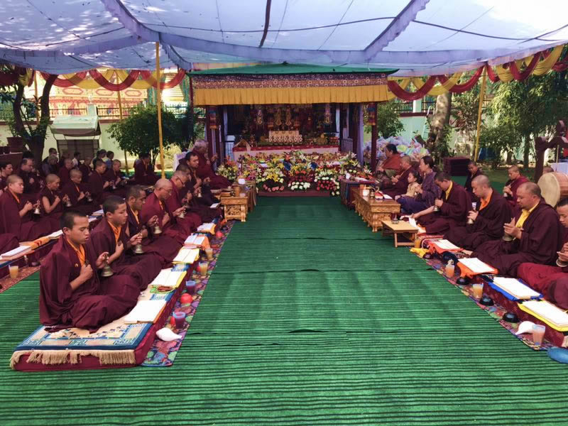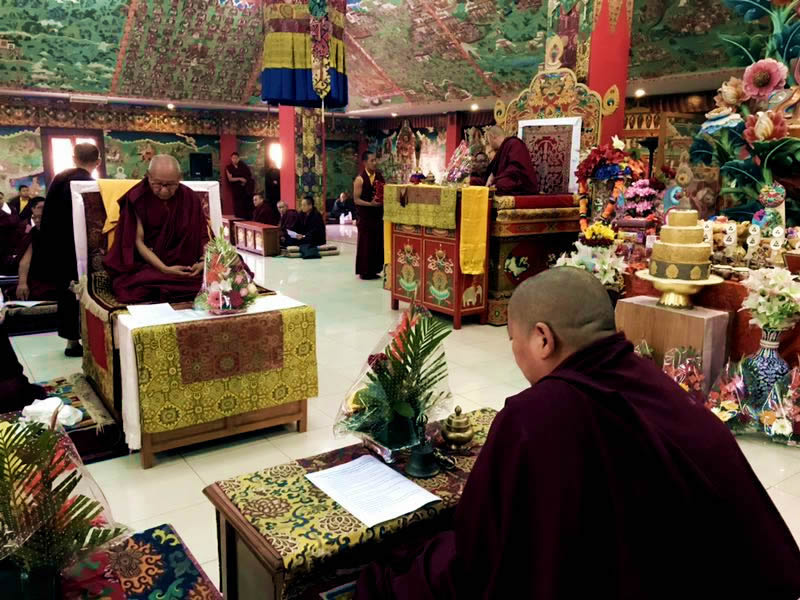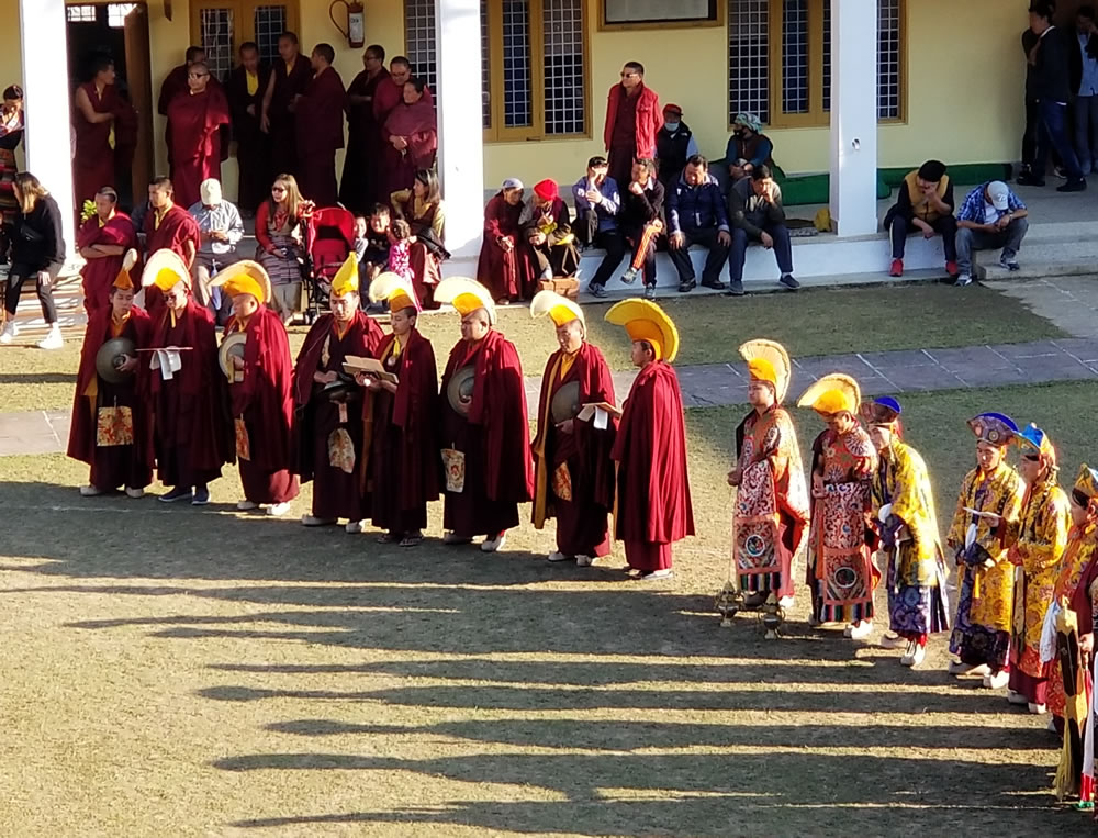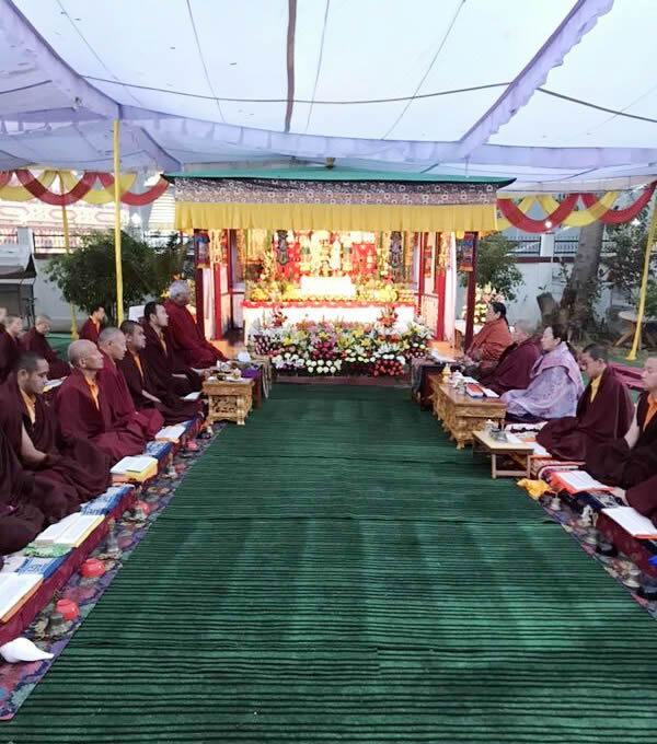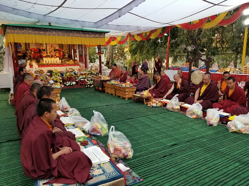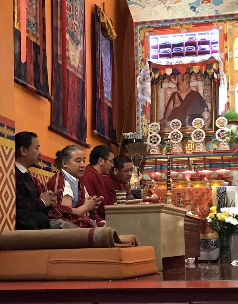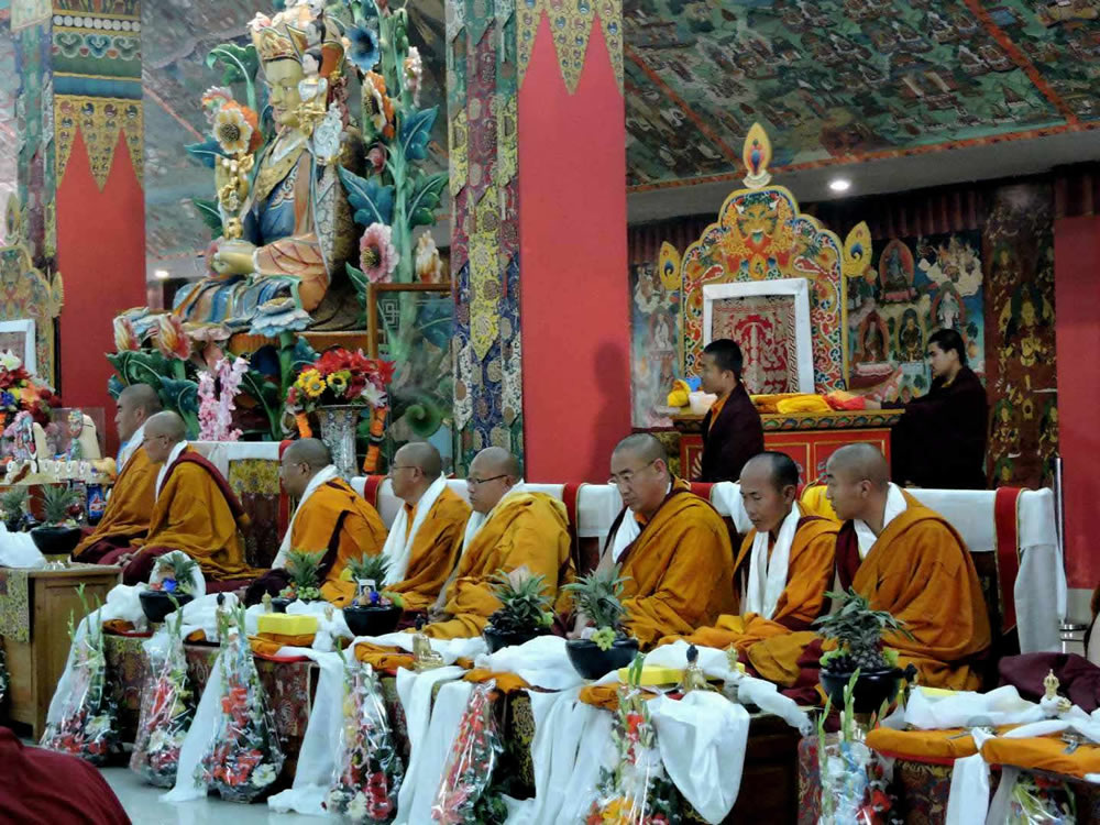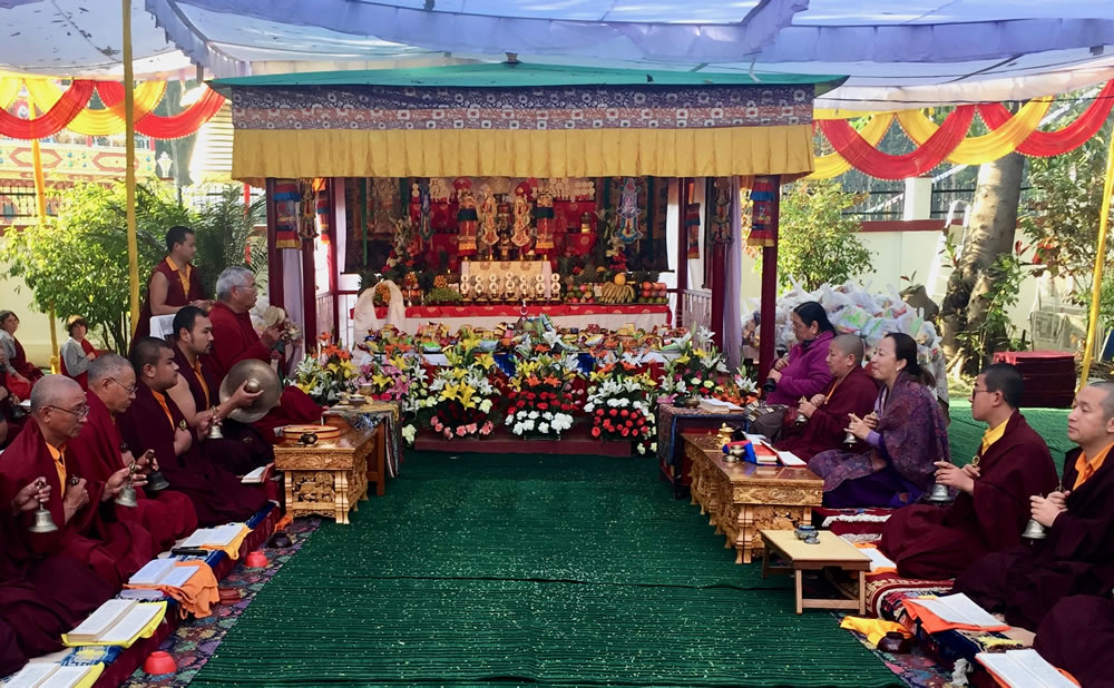 On the 18th of February, the entire family and Mindrolling sangha members commemorated the 10th Parinirvana Anniversary of our peerless root guru, Kyabje Mindrolling Trichen Dorje Chang. The entire sangha came together to practice the profound sadhana of Minling Dorsem led by Venerable Dagpo Rinpoche and Minling Umdze Venerable Choktrul Jigdral Ngawang Kunga Rinpoche. The ceremony was attended by Minling Sangyum Kushog, Jetsün Khandro Rinpoche, Jetsunla, Dungse Rinpoche, Jetsün Rinpoche, Venerable Nyoshul Khenpo Yangsi Rinpoche, monks, nuns and lay practitioners.
