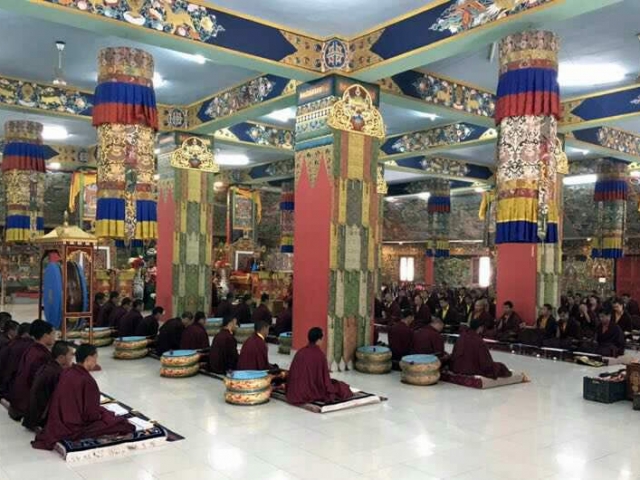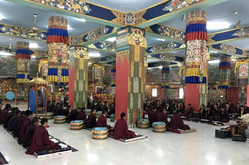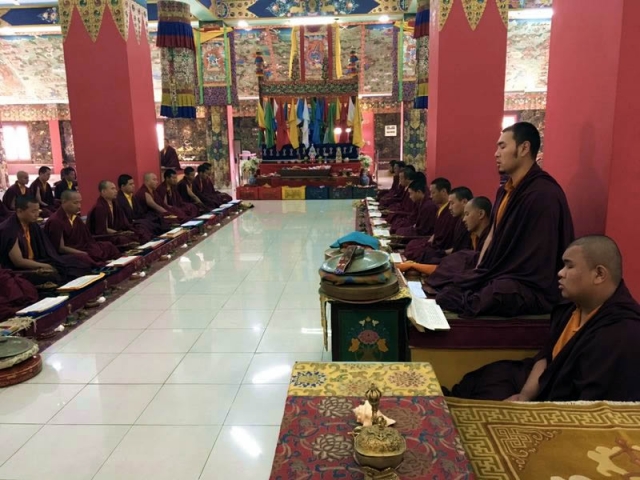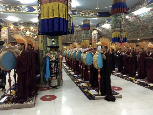 On the 23rd day of the first lunar month (the 21st of March 2017), this wondrous ten-day ceremony began in the Great Stupa at Mindrolling Monastery in India. This sacred drubchen is based on the Kagyed De-Sheg Du Pa terma, one of the treasure teachings discovered by the renowned, Tertön Nyang Ral Nyima Wozer, and later revived by Terdag Lingpa.
