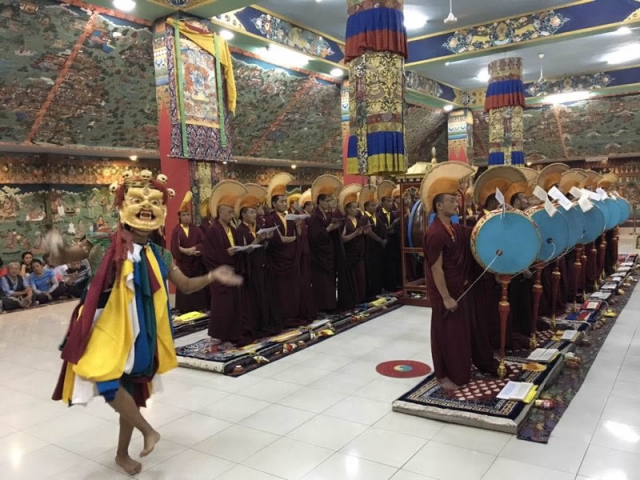 In accordance with the instructions of the great master, Chögyal Terdag Lingpa, and to commemorate the anniversary of his parinirvana, the sangha of Mindrolling Monastery perform the Kagyed drubchen each year at the end of the first lunar month.