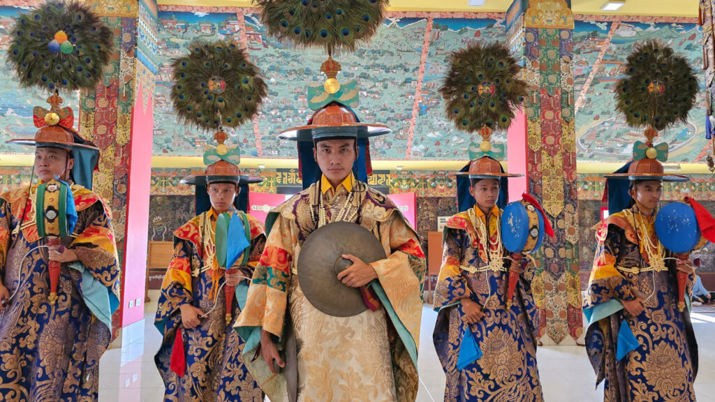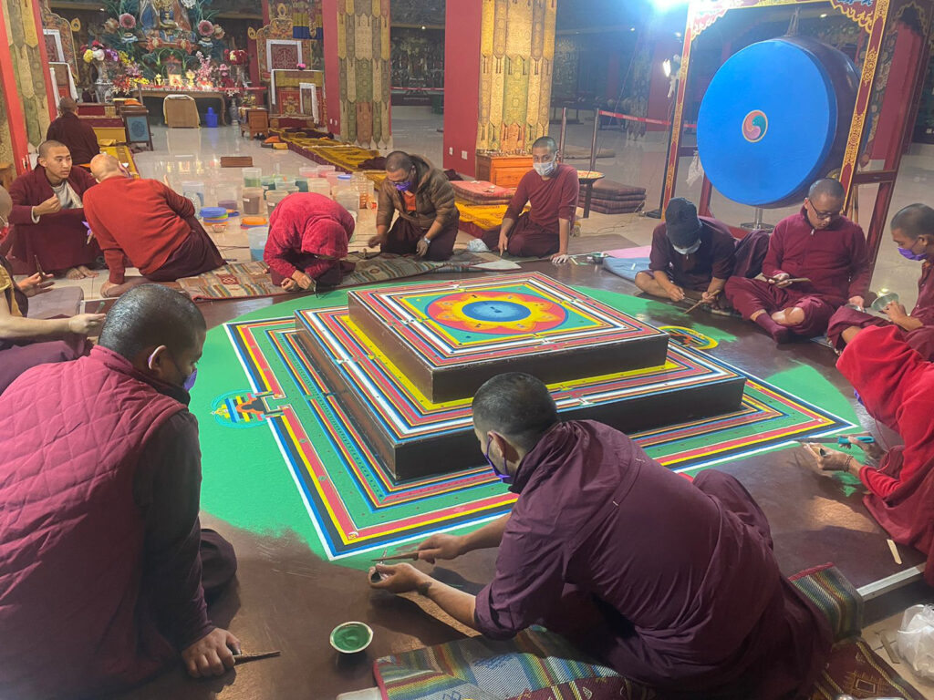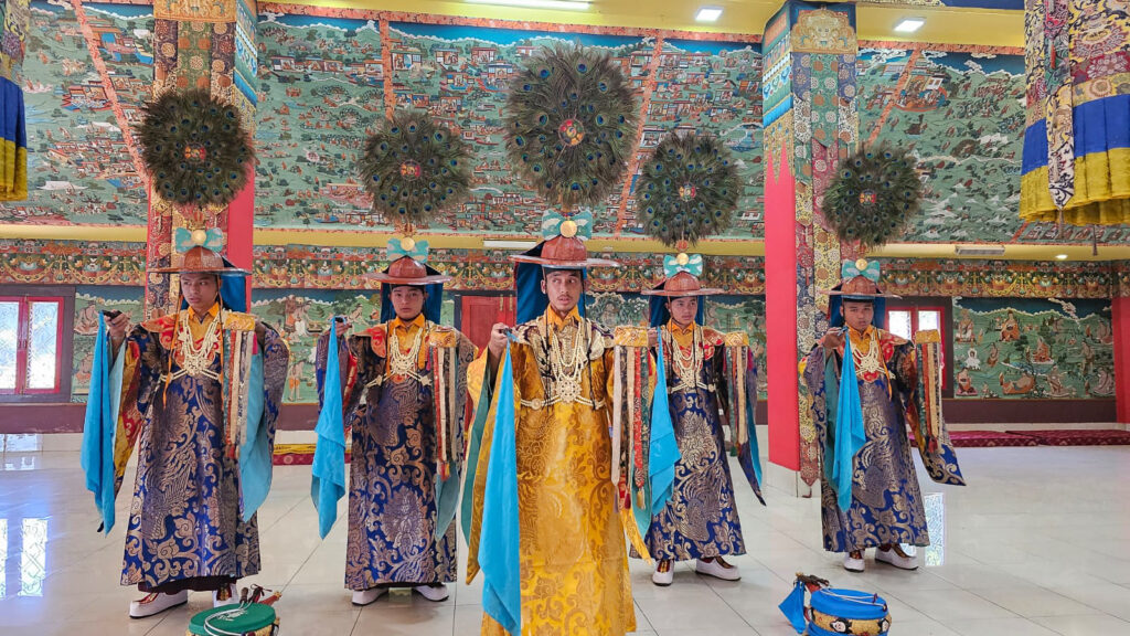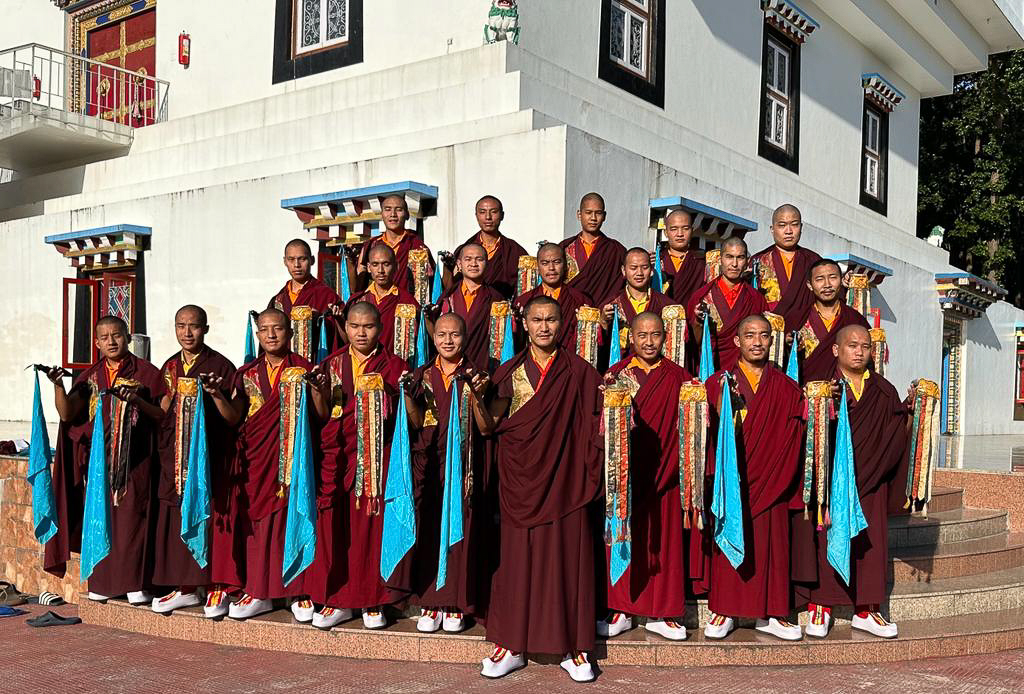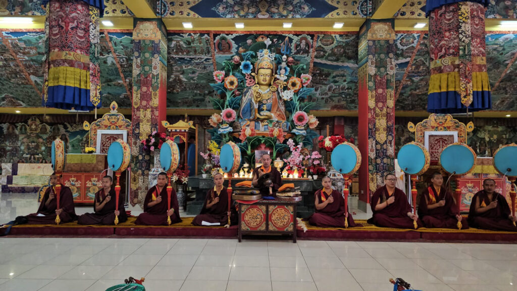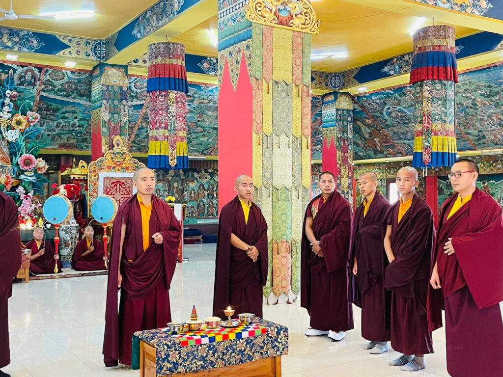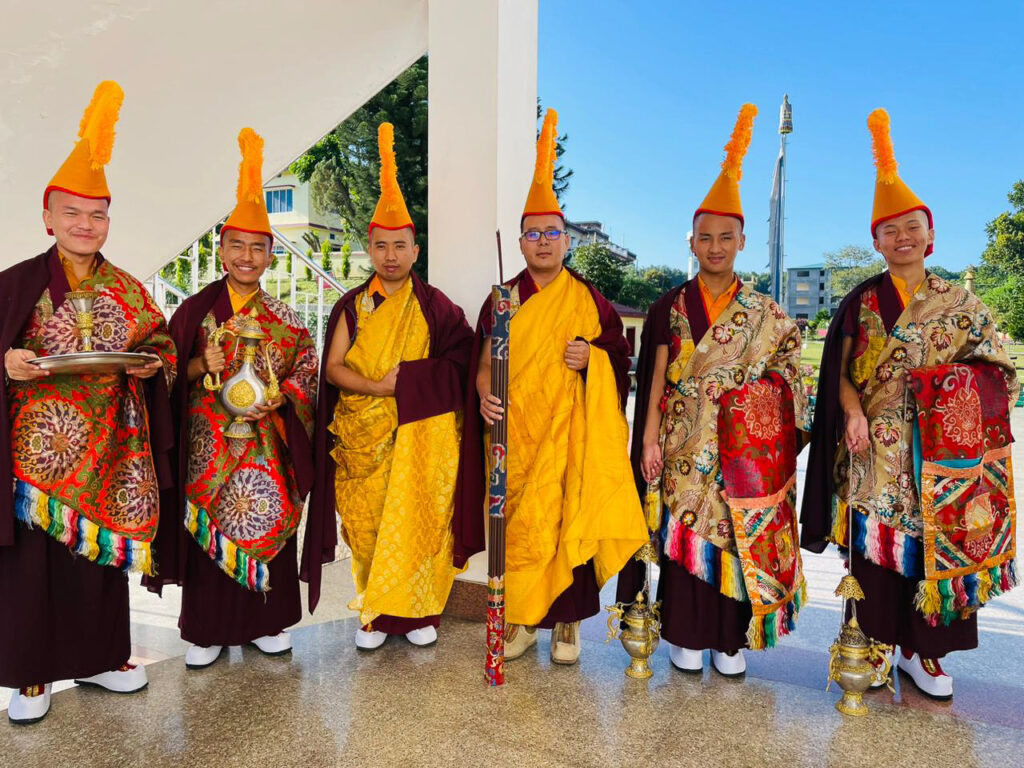 The great drubchö of Kama’i Tshogchen Düpa was performed by the monks of Mindrolling Monastery for seven days beginning on October 30th, 2023. This drubchö consists of the great sadhanas of Gyutrul Zhiwa, Gyutrul Throwo, Tshogchen Düpa, Lunglug Tshedrup and Yangdag Lhagu, which are performed simultaneously in different shrine rooms at the monastery. This profound practice brings an inconceivable shower of blessings and dispels obstacles for practitioners and the world. The practice culminated on the auspicious day of Lhabab Düchen, and members of the local Tibetan community attended the practice on this day to receive its profound blessings. The great gathering of merit is dedicated to all sentient beings and gathering all good circumstances of peace and benefit for the world.