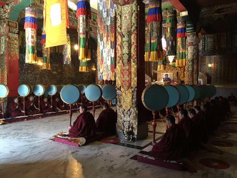 Ngedon Gatsal Ling is the main monastery and practice center. The daily prayers as well as the Drubchens (Mahasadhanas) are performed here in the monastery’s magnificent shrine room. Monks learn and practice rituals, mandala drawing, lama dances and the playing of ritual instruments. Monks can also choose to study thangka painting and sculpting.