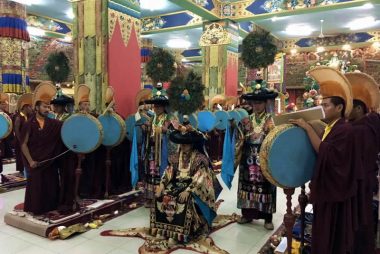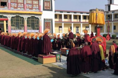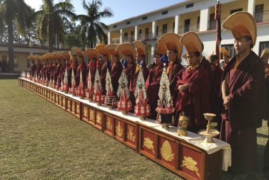 The entire Mindrolling Sangha and numerous guests joyfully offered a tenzhug to His Eminence Khochhen Rinpoche at Mindrolling Monastery on March 29th.