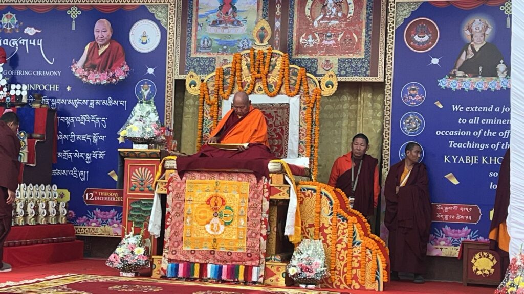 Following the inauguration of the Zangdok Palri Temple at the Mindrolling branch monastery in Sikkim, the Gongjo Tibetan community offered Tenzhug, long life offerings, to Kyabje Khochhen Rinpoche at Mindrolling Monastery in Dehra Dun, India. Many esteemed teachers and guests offered fervent and heartfelt prayers for the continued presence and vast dharma activities of Rinpoche. Mindrolling has long been blessed by the profound blessings of Kyabje Rinpoche. May Rinpoche’s life be long and may Rinpoche’s vast activities continue to benefit beings for a long time.