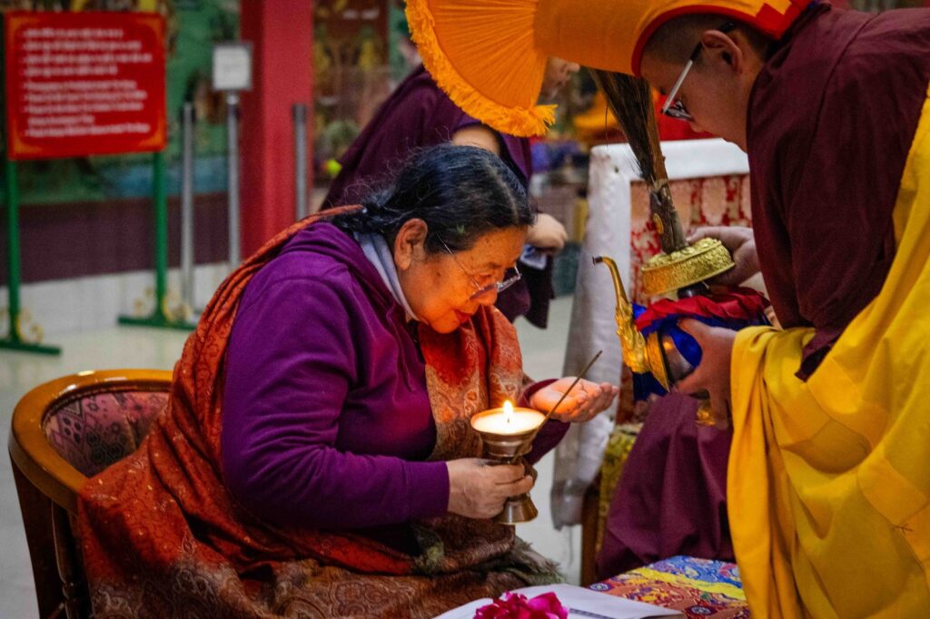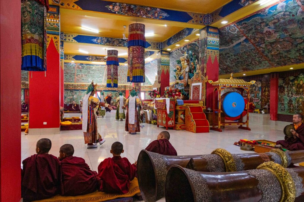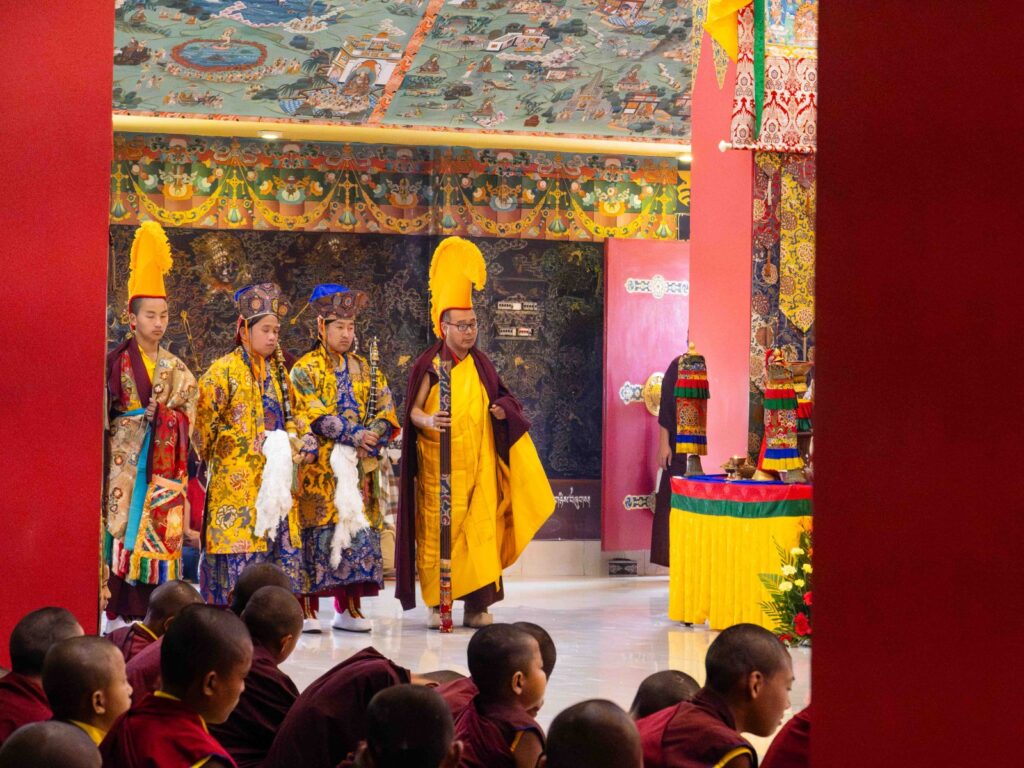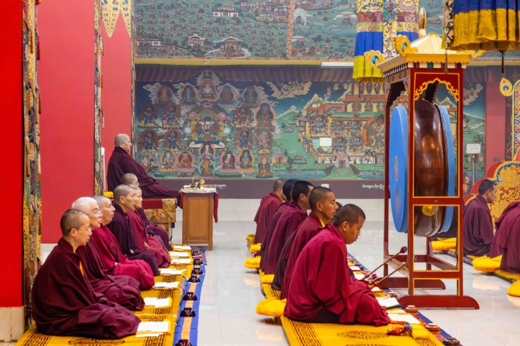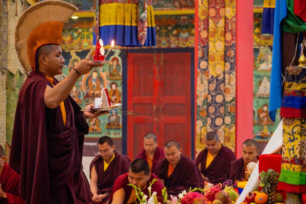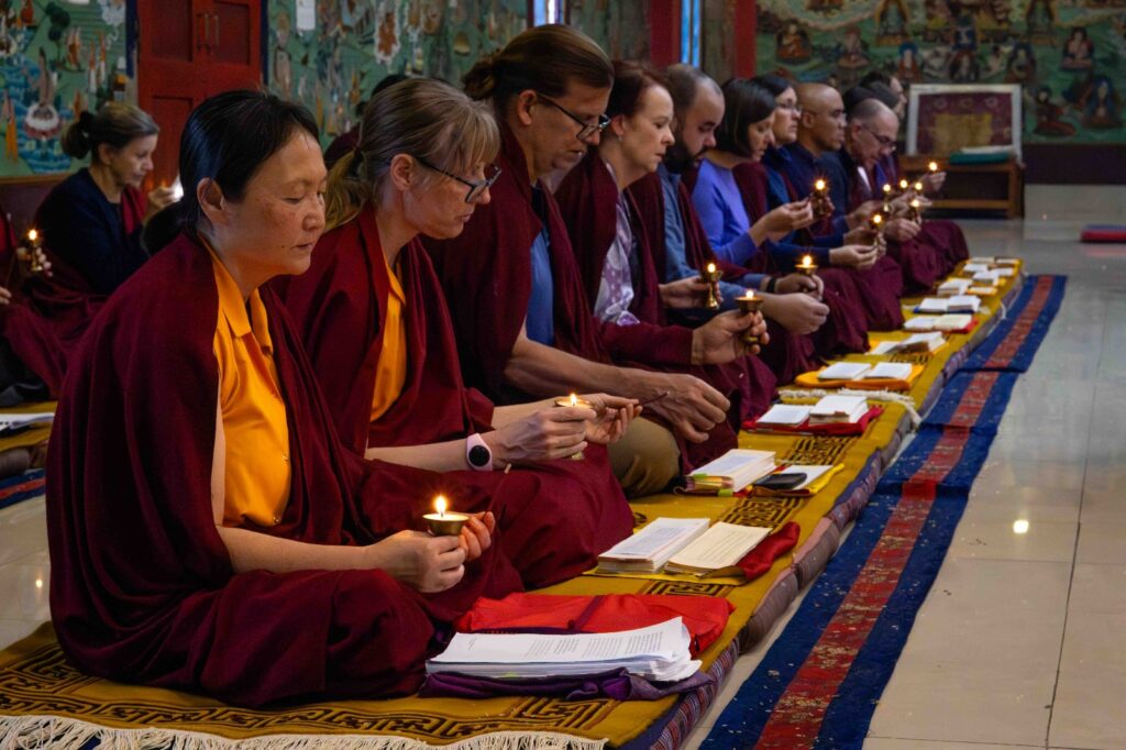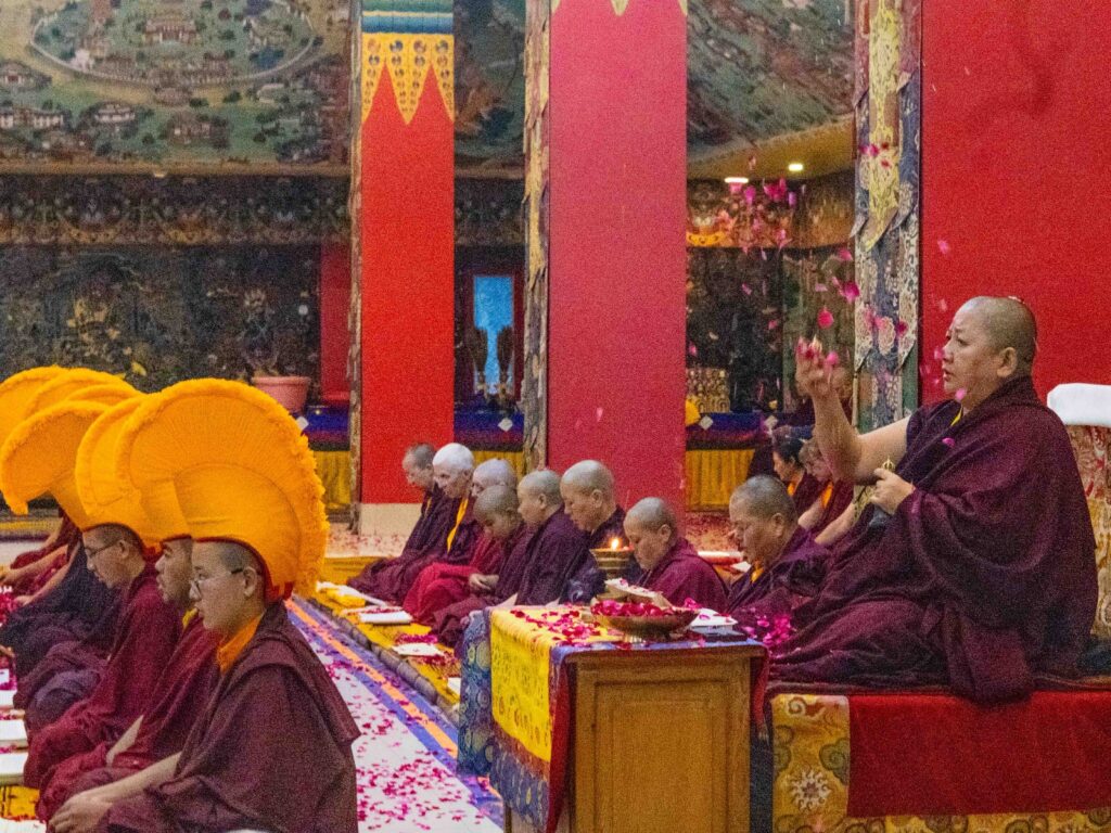 On the 10th day of the first lunar month, Mindrolling Monastery began the annual seven-day drubchen of Thug Je Chenpo, the Great Compassionate One. This profound and extensive mahasadhana was discovered by the founder of Mindrolling, Rigdzin Terdag Lingpa in 1680, and it has been kept as one of the most sacred and important practices in the Mindrolling tradition. This drubchen is held annually during the month of Chötrul Duchen, the Buddha’s Month of Miracles, to mark the parinirvana of Kyabje Minling Trichen. Remembering the limitless compassionate activity of this great master, the merit gathered in this drubchen is dedicated to the long life of the gurus, the flourishing of Dharma and the liberation of all sentient beings. On the final day of the drubchen, the local community gathered to receive the siddhis and blessings of this practice, and it was a wonderful celebration of merit and wisdom for all. Having performed this practice with pure motivation of devotion and bodhicitta, may the merit reach all beings in the three worlds and may it be the cause for all beings to attain perfect Buddhahood.