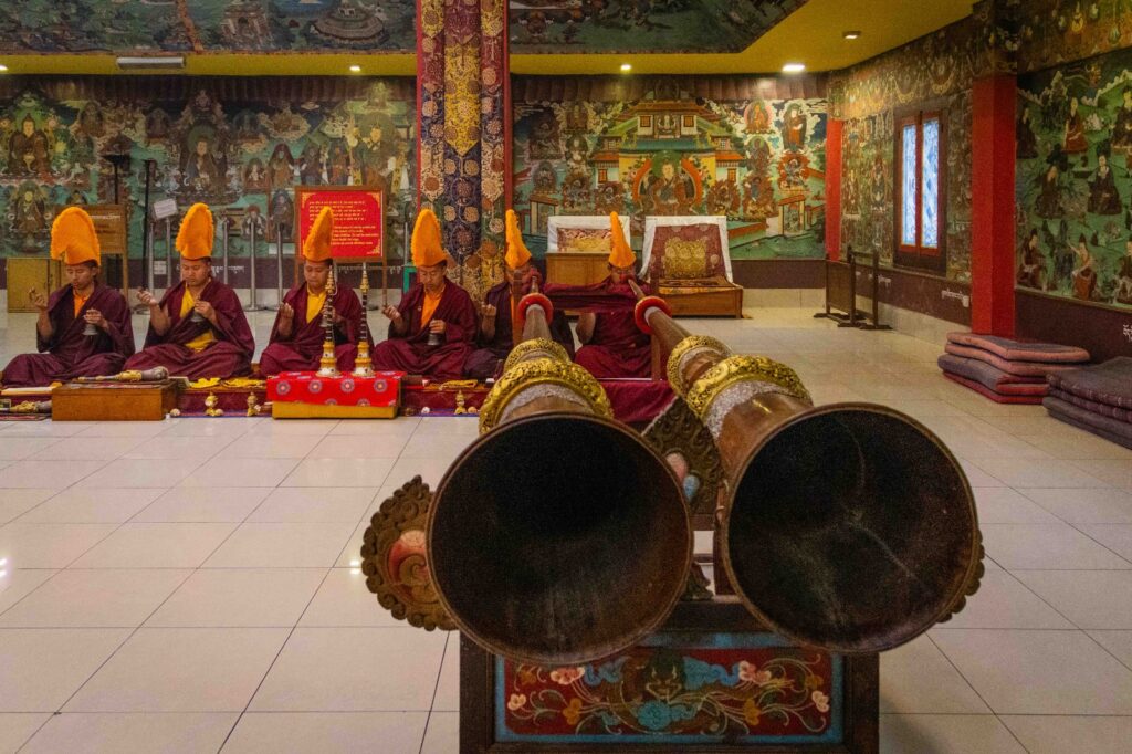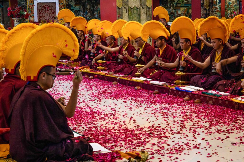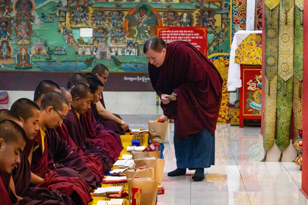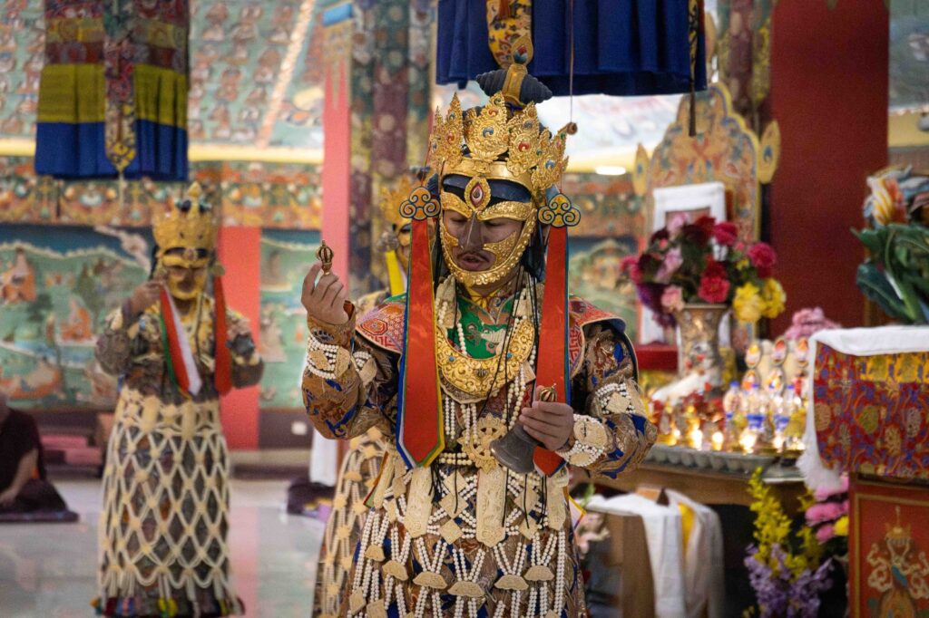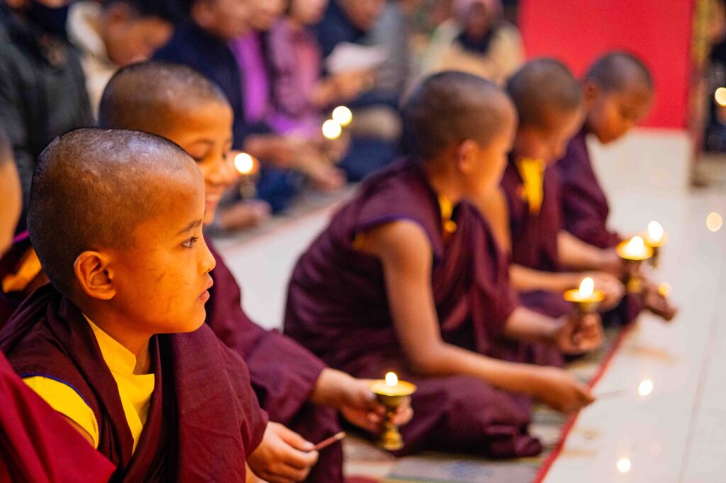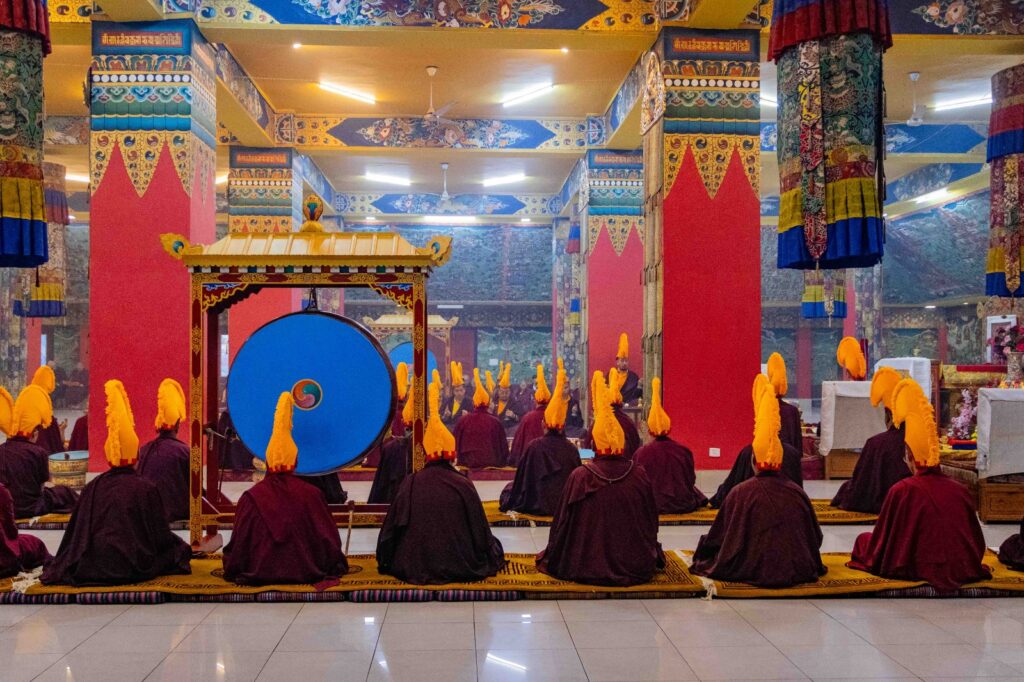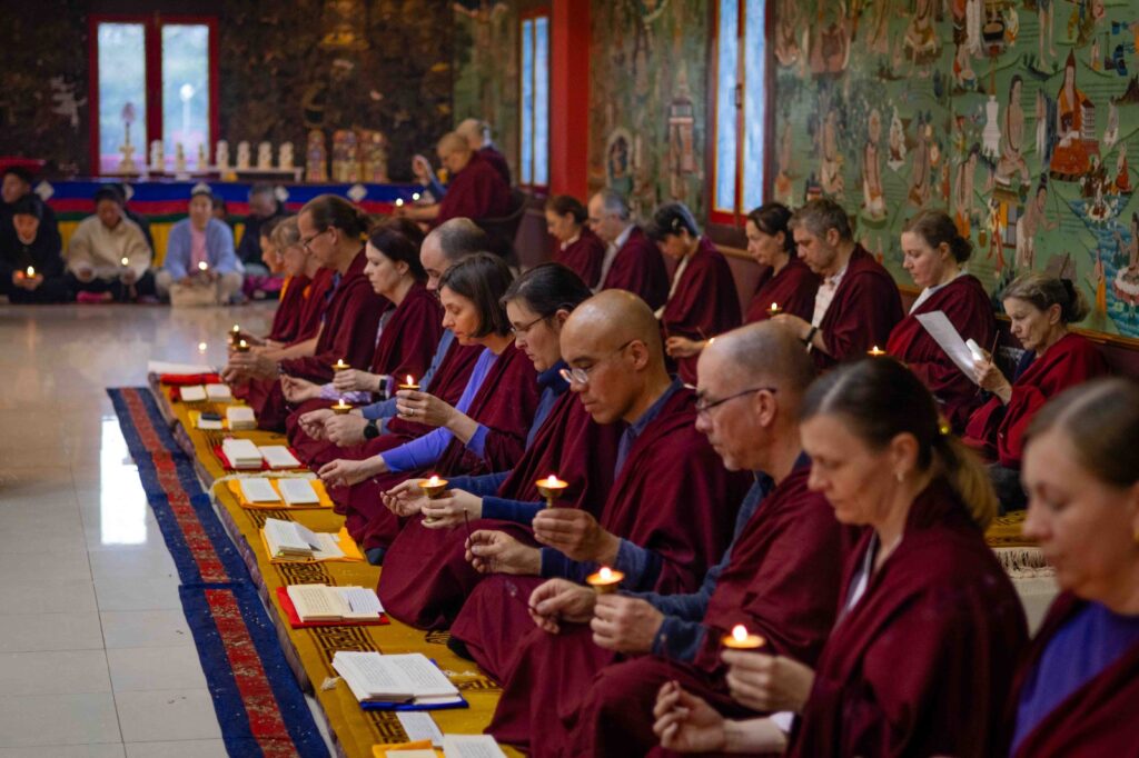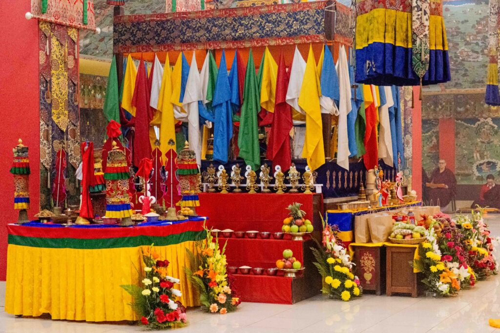 On the 10th day of the first lunar month, Mindrolling Monastery began the annual seven-day drubchen of Thug Je Chenpo, the Great Compassionate One. This profound and extensive mahasadhana was discovered by the founder of Mindrolling, Rigdzin Terdag Lingpa in 1680, and it has been kept as one of the most sacred and important practices in the Mindrolling tradition. This drubchen is held annually during the month of Chötrul Duchen, the Buddha’s Month of Miracles, to mark the parinirvana of Kyabje Minling Trichen. Remembering the limitless compassionate activity of this great master, the merit gathered in this drubchen is dedicated to the long life of the gurus, the flourishing of Dharma and the liberation of all sentient beings. On the final day of the drubchen, the local community gathered to receive the siddhis and blessings of this practice, and it was a wonderful celebration of merit and wisdom for all. Having performed this practice with pure motivation of devotion and bodhicitta, may the merit reach all beings in the three worlds and may it be the cause for all beings to attain perfect Buddhahood.